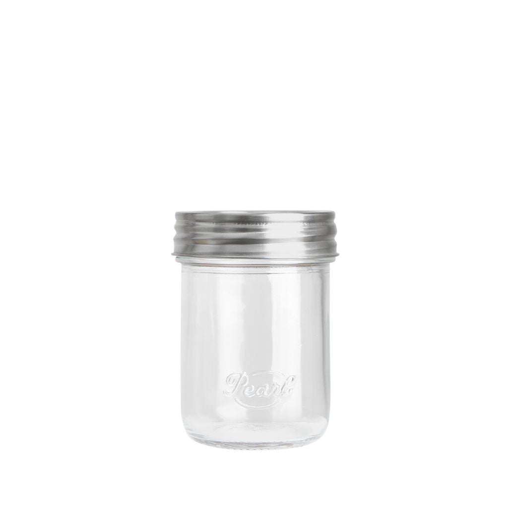 The Pearl SYMPL is a mason jar with screw cap. It is characterized by a minimalist, cylindrical design in order to comfortably access and remove the contents of your glass jar.